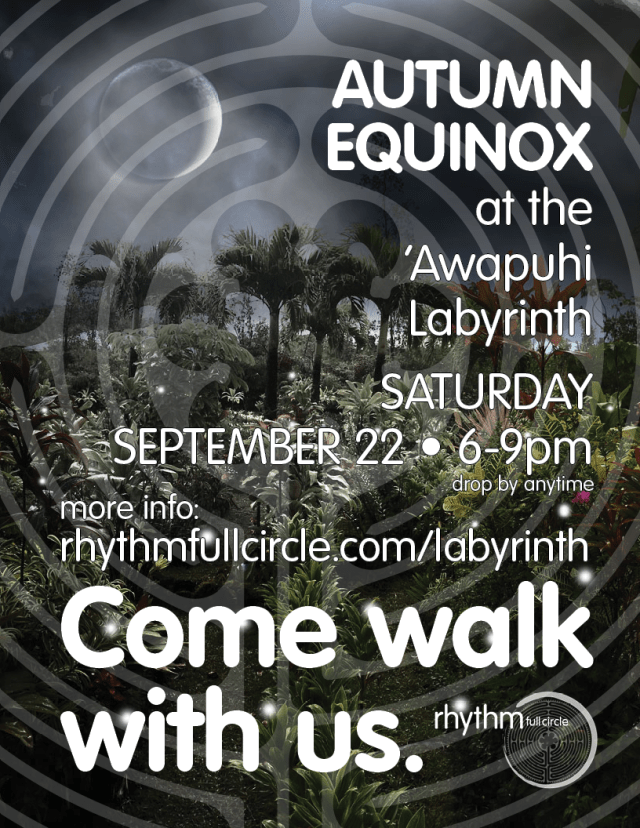 My name is Deborah Masterson; I am the caretaker of the βAwapuhi Labyrinth on the Big Island of Hawaiβi. I'm also a certified advanced TaKeTiNa Rhythm teacher. My fascination with the mystery and power of rhythm was ignited when in 1988 I attended a Samulnori concert. For many years, I concentrated on Korean percussion and dance, both in Honolulu and in Korea. Over the intervening years, my explorations have included West African dundun, Afro-Cuban and Congolese congas, dumbek, frame drum, and classical Indian music. But these days I am into painting! Click on ART! in the main menu.