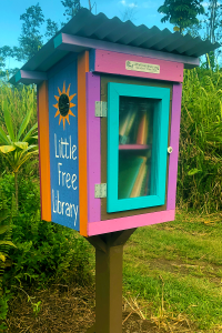 Now open for business, Hawaiian Paradise Park’s second Little Free Library stands at the entrance of the ‘Awapuhi Labyrinth on at 15-1601 4th Ave. (the first is at 15-1834 1st Ave.)*