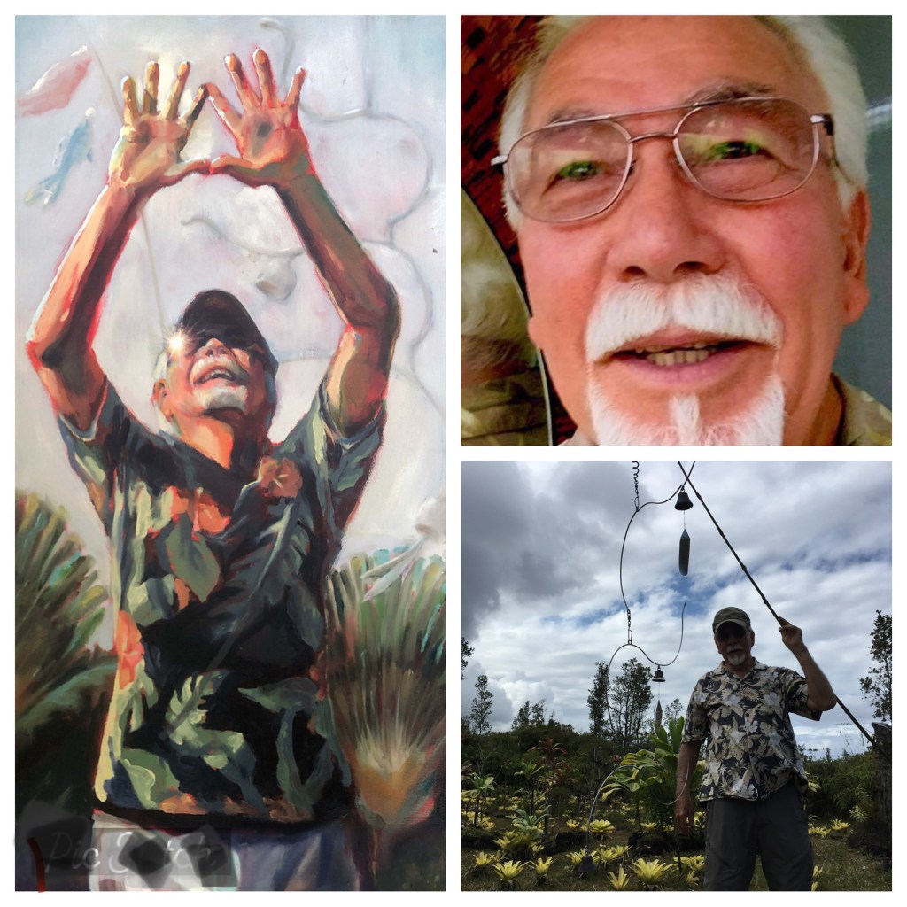 Born and raised on O’ahu, Verne Presnall, with a personal letter from Alan Watts, was able to escape Vietnam and the draft, instead running a home for emotionally disturbed boys. Verne’s working life as a metal worker included extended stays in the Middle East. After retirement, he ended up on the Big Island where pursued his interests in photography and metalworking, frequently exhibiting. He volunteered with various community organizations. If you visited the ‘Awapuhi Labyrinth in the past, you doubtless enjoyed his dancing metal mobiles, colorful flying fish, and the magnificently well-groomed traveler palms gracing the entrance. That was all Verne’s doing.