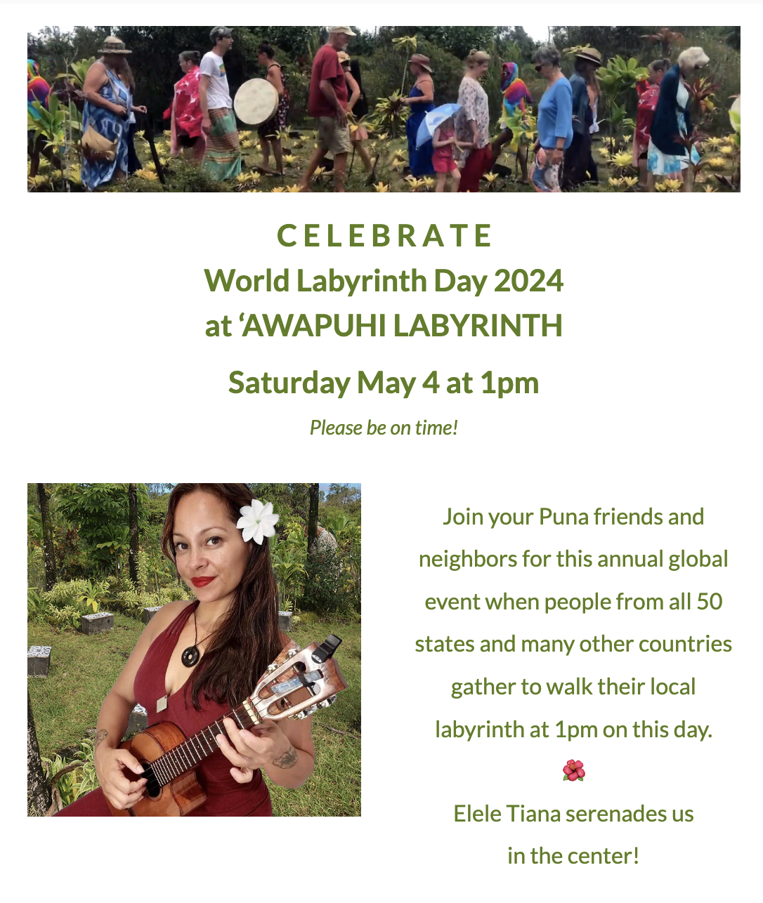 My name is Deborah Masterson; I am the caretaker of the ‘Awapuhi Labyrinth on the Big Island of Hawai‘i. I'm also a certified advanced TaKeTiNa Rhythm teacher. My fascination with the mystery and power of rhythm was ignited when in 1988 I attended a Samulnori concert. For many years, I concentrated on Korean percussion and dance, both in Honolulu and in Korea. Over the intervening years, my explorations have included West African dundun, Afro-Cuban and Congolese congas, dumbek, frame drum, and classical Indian music. But these days I am into painting! Click on ART! in the main menu.