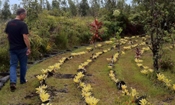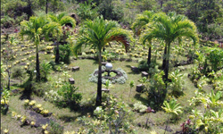 The ‘Awapuhi Labyrinth was built in 1999 by Christie Wolf with help from her husband, John. This eleven-circuit pattern is a double-sized replica of the 13th century design inlaid into the floor of the Chartres Cathedral in France. The path that winds through ‘Awapuhi Labyrinth’s 90-foot diameter covers four-tenths of a mile one way. So, if you follow the path all the way in and all the way out again, then add the distance you have walked from the road and back, you find you have traveled approximately one mile.
