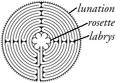 These are the areas that separate the 180-degree turns in the path, the only part of the labyrinth where you don’t step. A labrys is a symmetric double-headed ritual axe and one of the holiest Cretan religious symbols. It is commonly associated with feminine qualities, causes, and divinities.